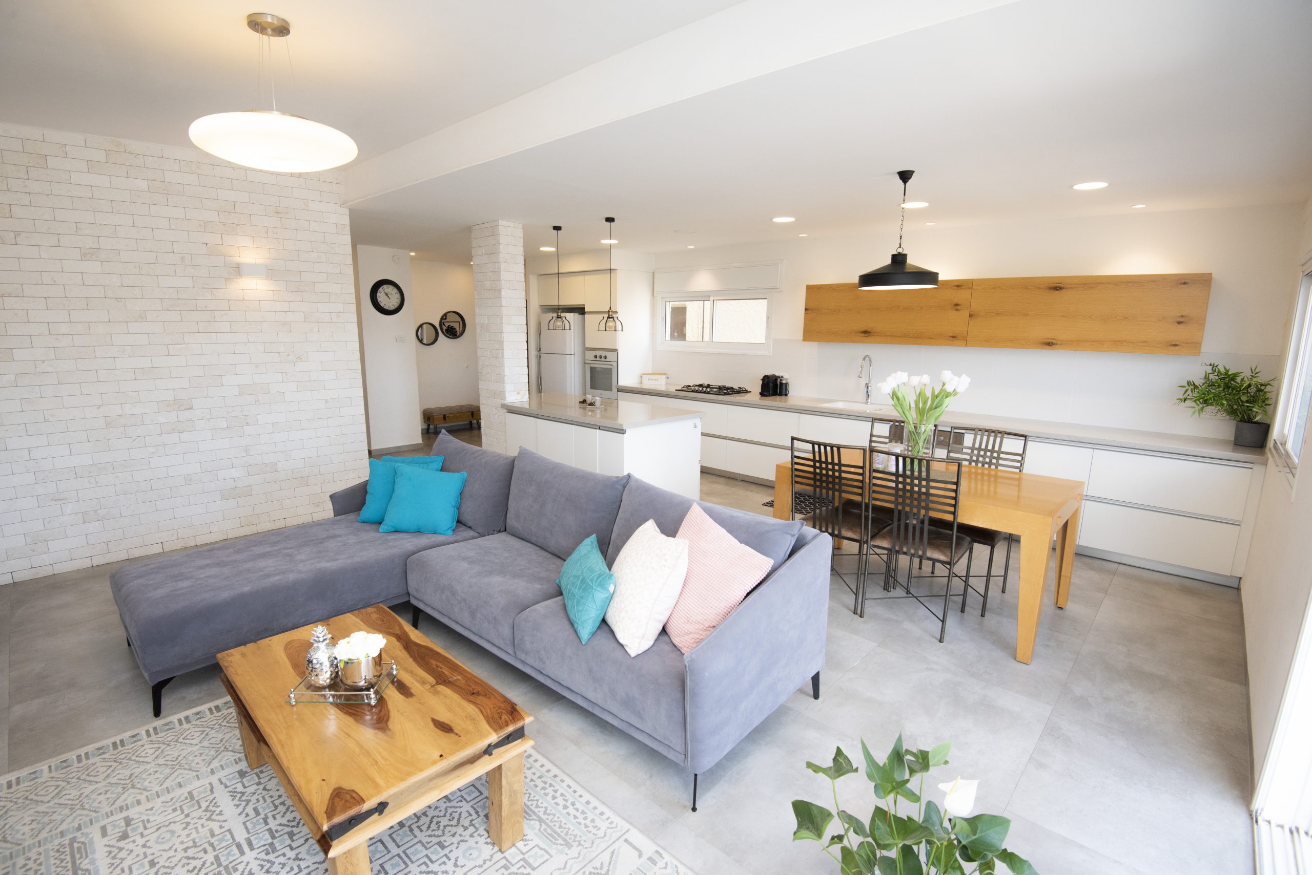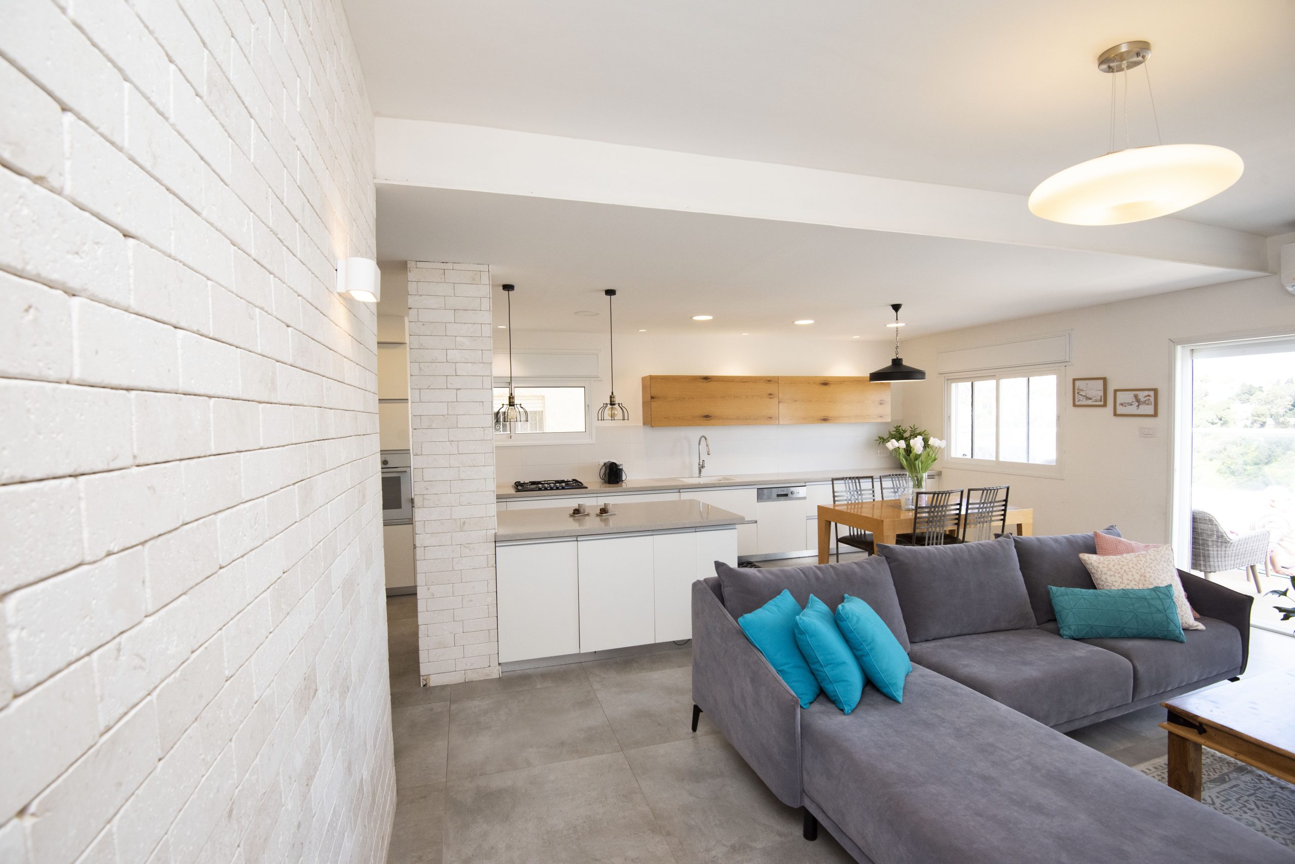 התהליך: קיר 10 "עקשן" מאוד באורך 6 מ' שהיה אמור לפתוח את כל החלל המרכזי, התגלה כקיר תומך למבנה! אז לאחר אישור מהנדס ותכניות חיזוק למבנה באמצעות ריילס, נשבר הקיר ונפתחו גלי השראה ופוטנציאל עצום לחלל, הבית קיבל אופי חדש וייחודי. כמו כן, התהליך כלל חלוקה חדשה של החדרים והחלל המרכזי, תכניות: הריסה, בניה,קונסטרוקציה, חשמל, אינסטלציה, ריצופים וחיפויים, גבס, תאורה בגבס, תכנון מטבח, נגרויות בהתאמה אישית , פיקוח עליון והתנהלות שוטפת מול בעלי המקצוע.